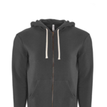 Next Level Unisex 7.4 Ounce Santa Cruz Full Zip Hoodie. 80% cotton/20% poly. 30 single/7.4 ounce 100% cotton face. Jersey lined hood. Flat drawcord in natural. Front pockets. Contrast 3/8 back neck binding. Locker patch for printable neck label. Exposed YKK zipper. 1x1 ribbing at waistband and cuffs. Unisex fit. Tear away label.