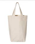 OAD 10.0 Ounce Two Bottle Canvas Wine Tote. 10 oz/LYD 100% cotton canvas. Holds two 750 ml bottles. Self fabric handles. 3" bottom gusset. Padded center divider. 5.5 x 10.5 x 3.